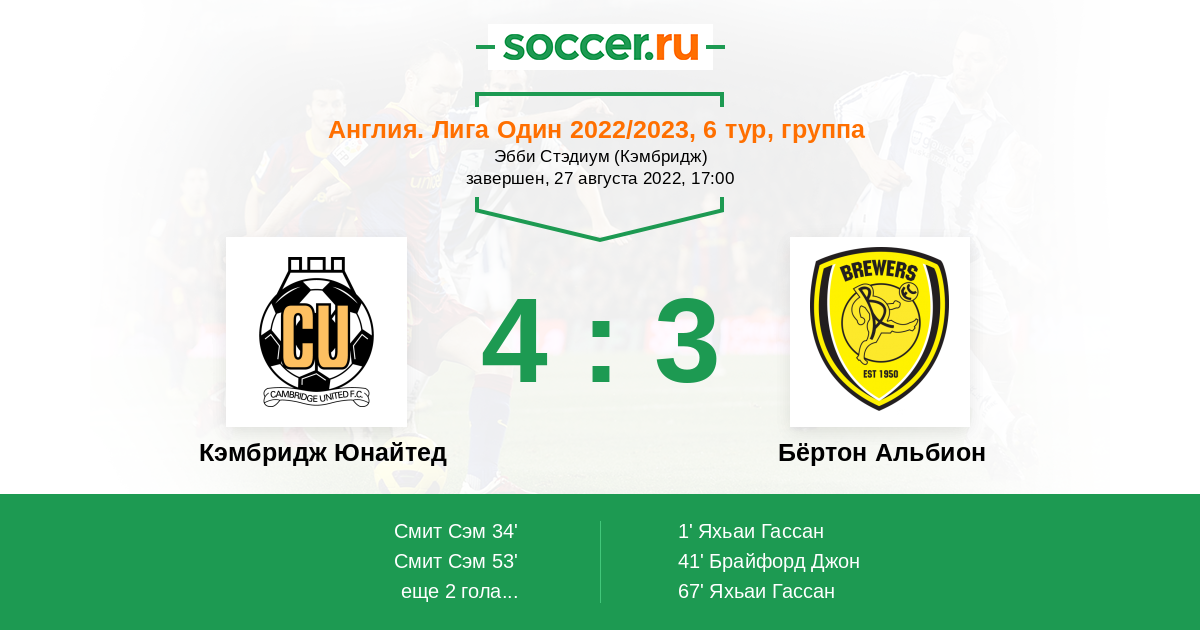 Протокол матча Кэмбридж Юнайтед против Бёртон Альбион