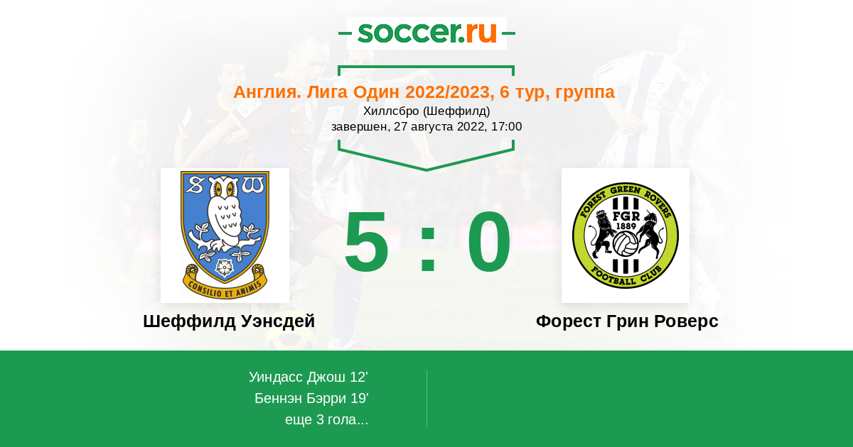 Протокол матча Шеффилд Уэнсдей против Форест Грин Роверс