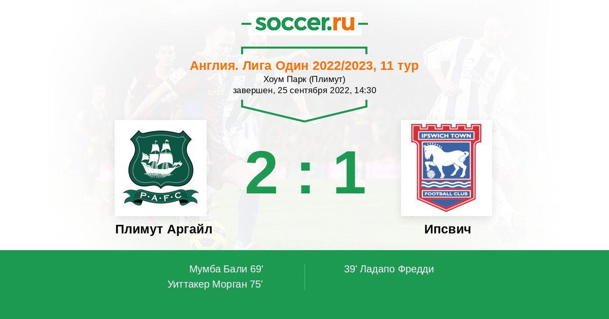 Протокол матча Плимут Аргайл против Ипсвич