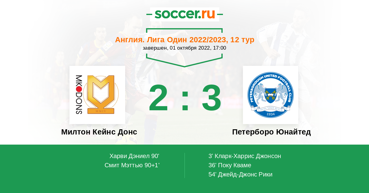 Гол90+1' (2:3) Смит Мэттью (7) (Кайоде Джошуа (15))