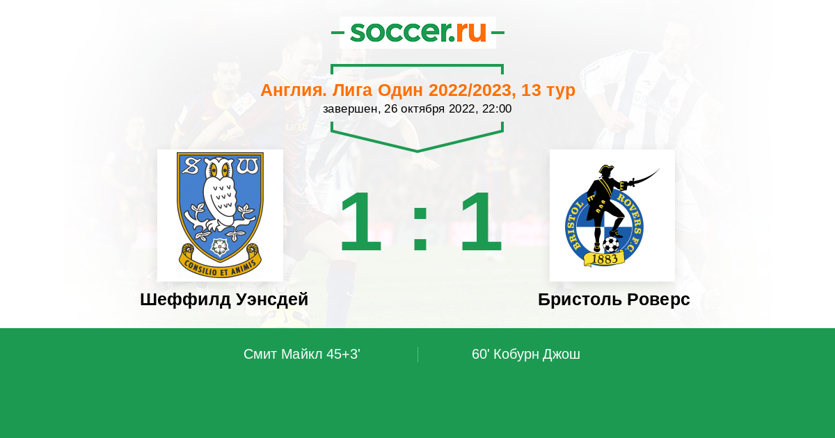 Протокол матча Шеффилд Уэнсдей против Бристоль Роверс