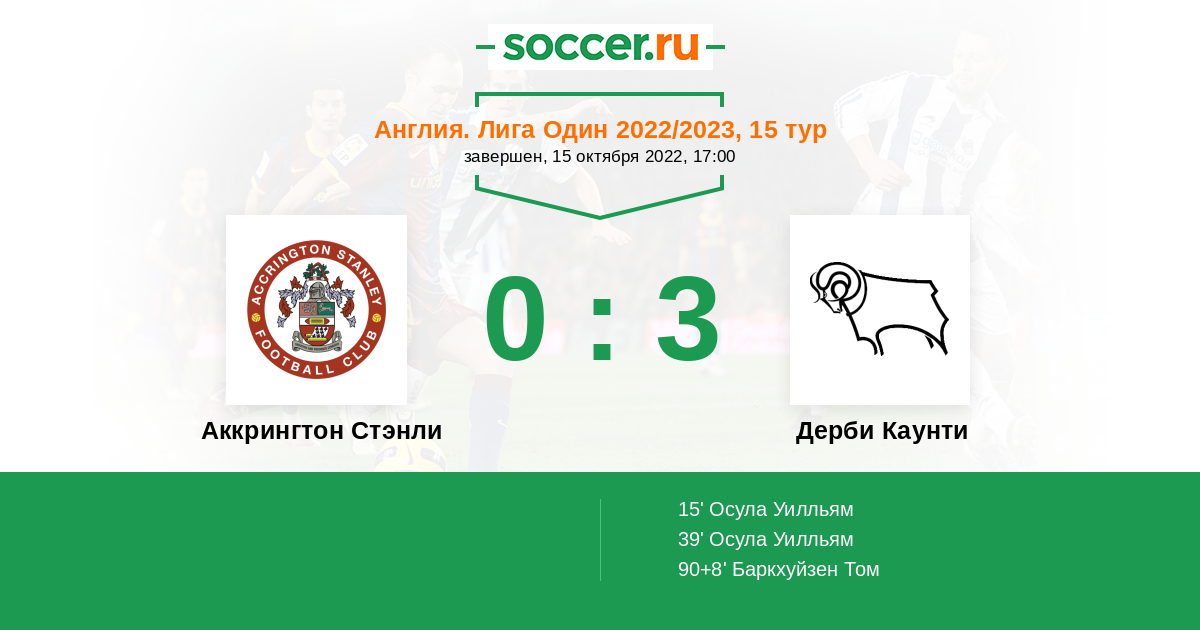 Протокол матча Аккрингтон Стэнли против Дерби Каунти