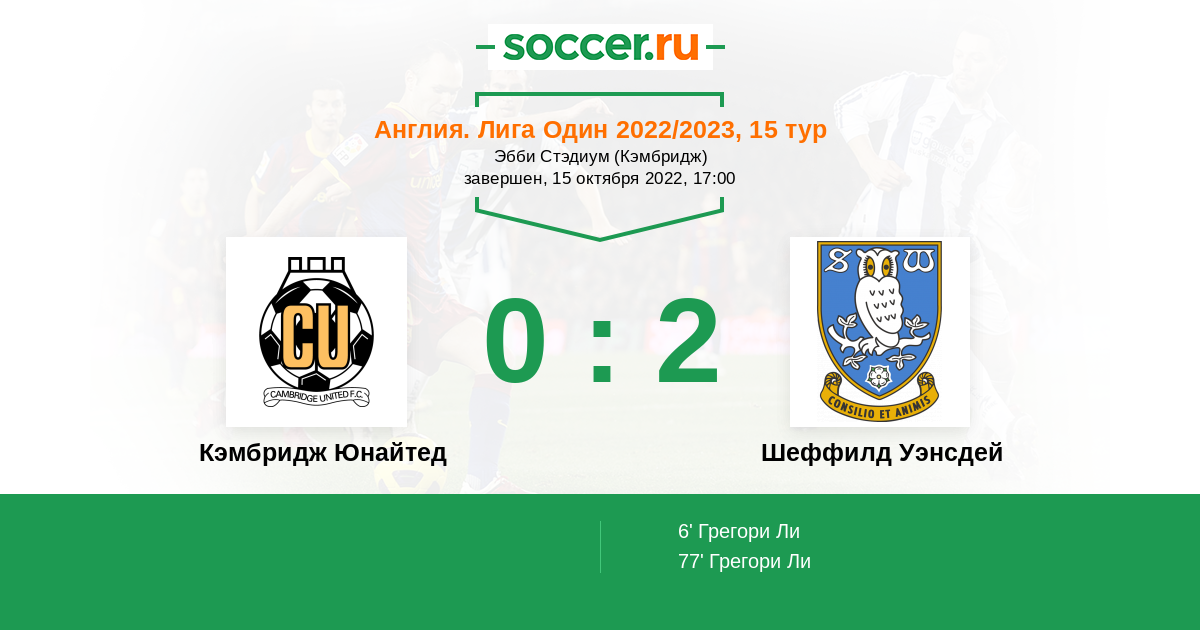 Протокол матча Кэмбридж Юнайтед против Шеффилд Уэнсдей