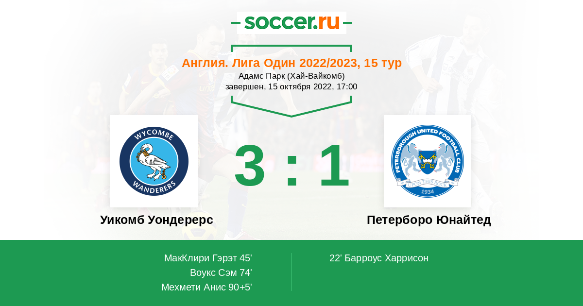 Протокол матча Уикомб Уондерерс против Петерборо Юнайтед