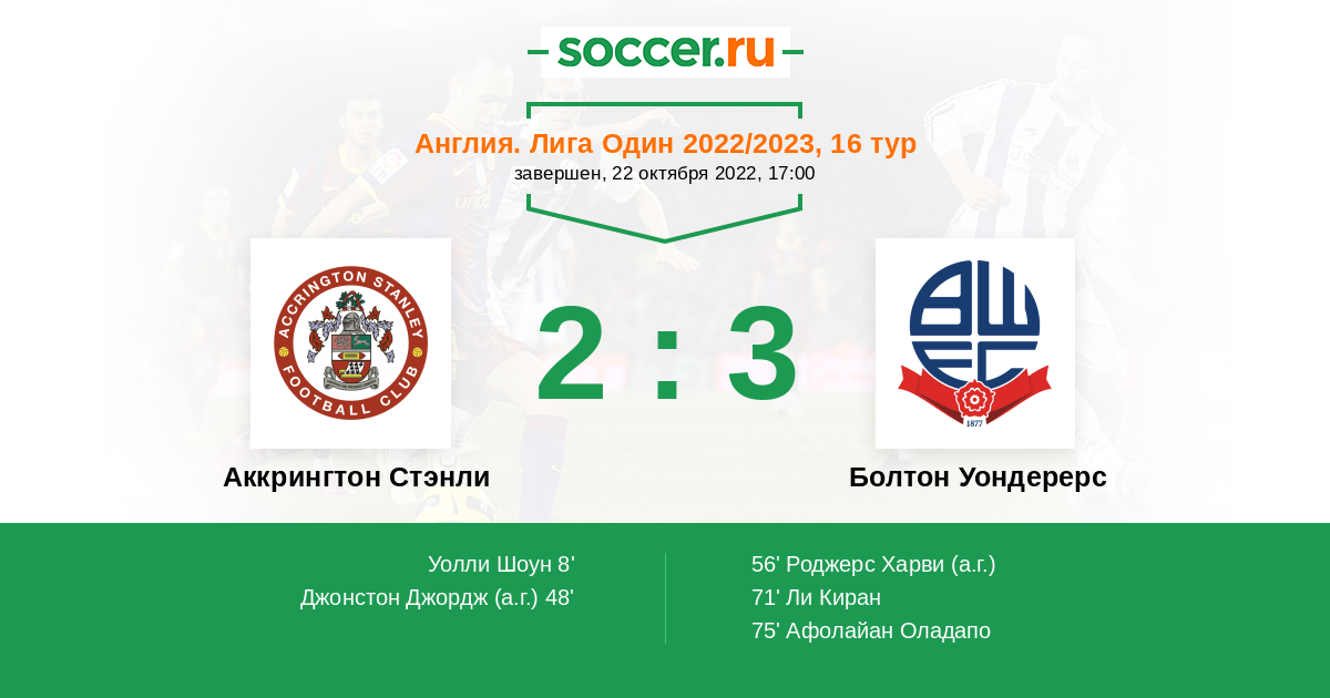 Протокол матча Аккрингтон Стэнли против Болтон Уондерерс