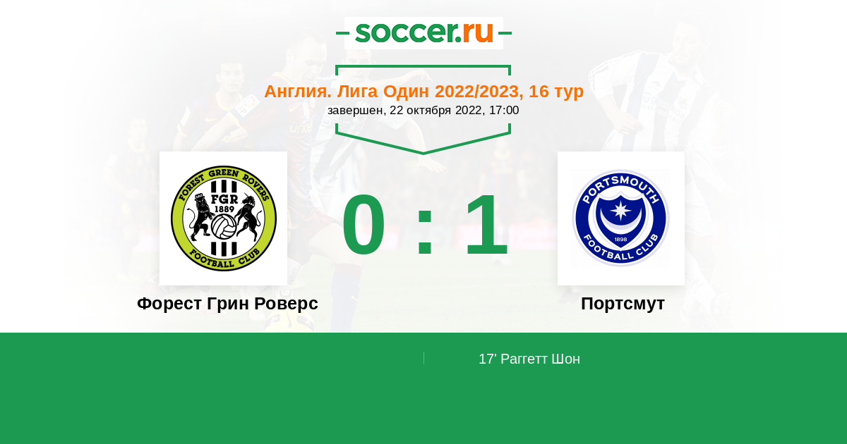 Протокол матча Форест Грин Роверс против Портсмут
