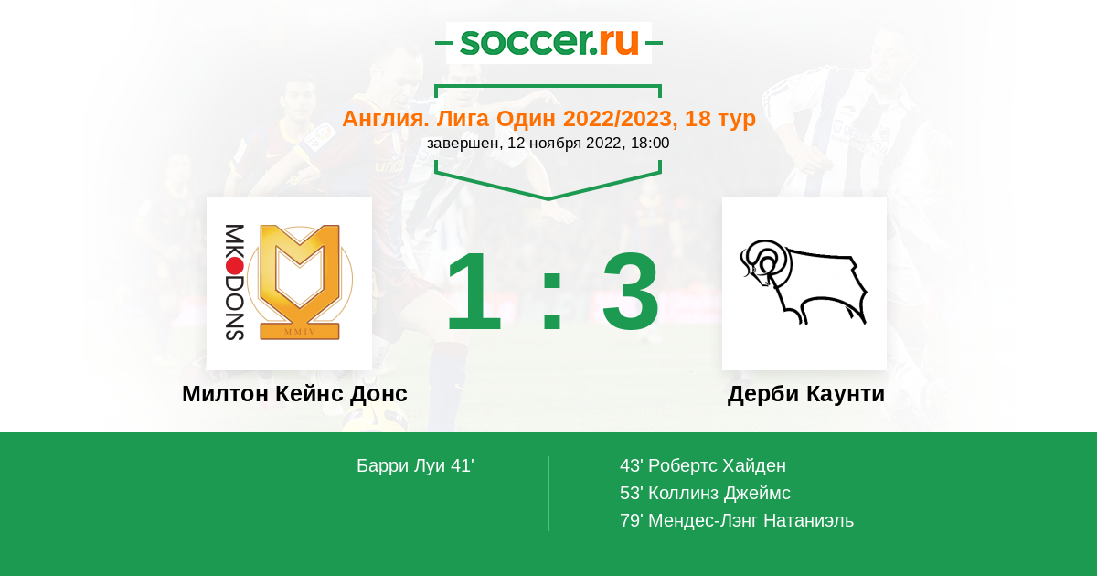 Протокол матча Милтон Кейнс Донс против Дерби Каунти