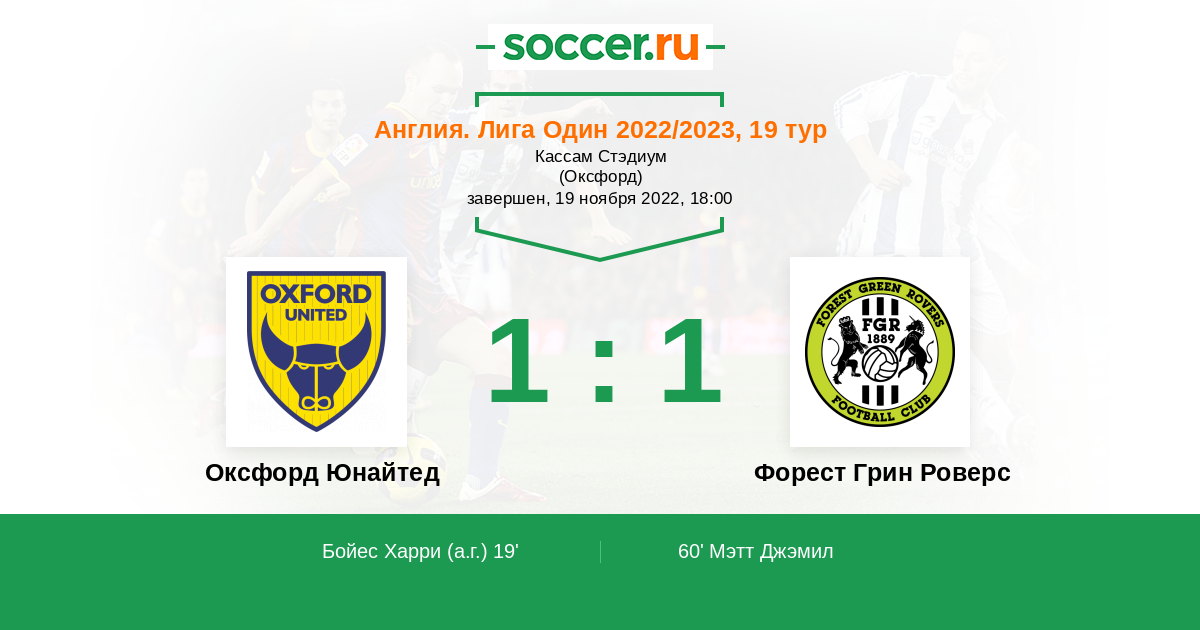Протокол матча Оксфорд Юнайтед против Форест Грин Роверс