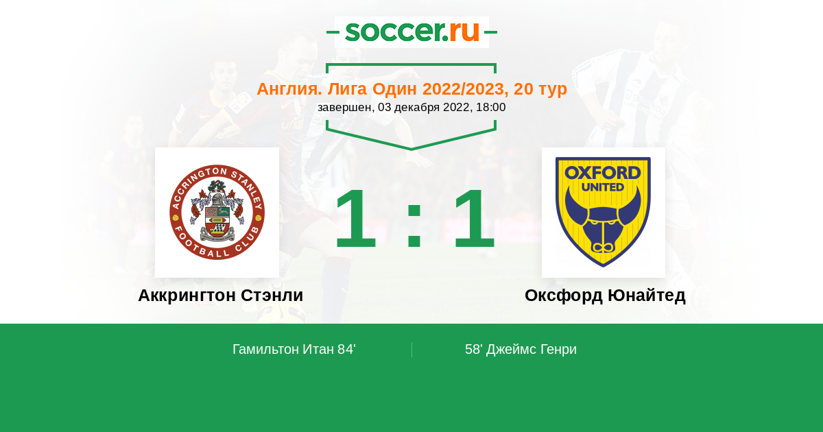 Протокол матча Аккрингтон Стэнли против Оксфорд Юнайтед