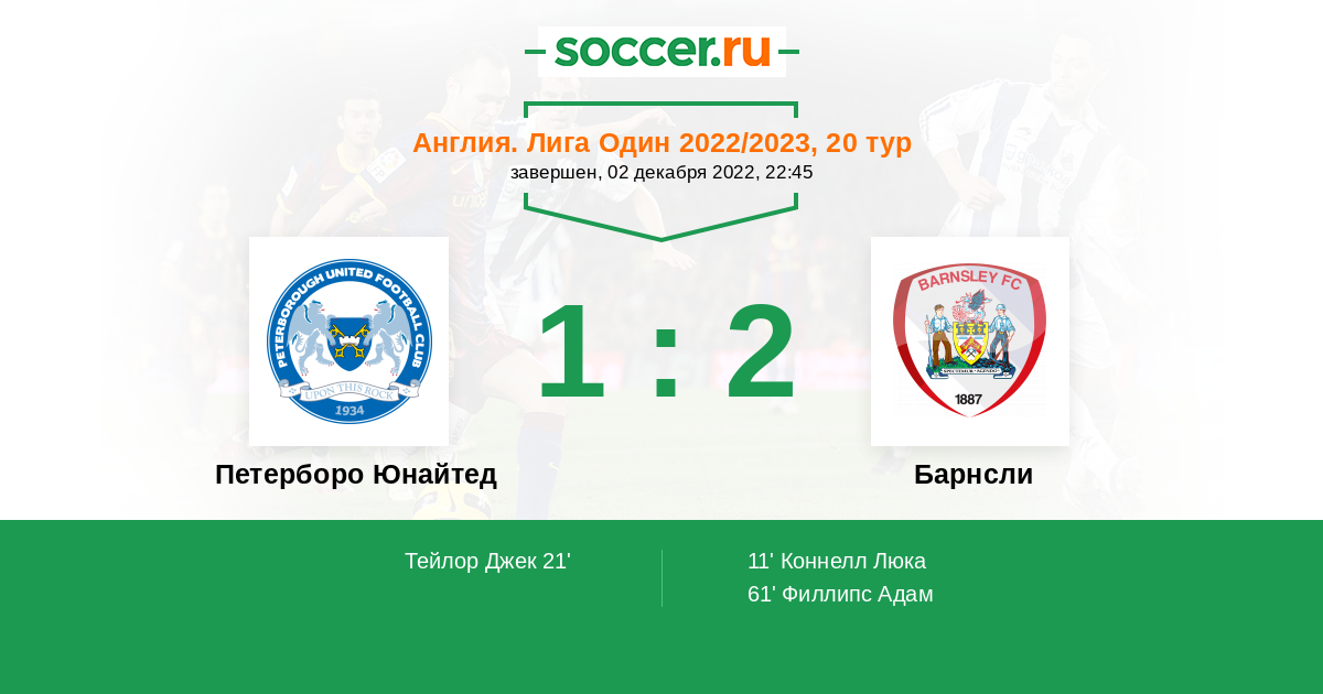 Протокол матча Петерборо Юнайтед против Барнсли