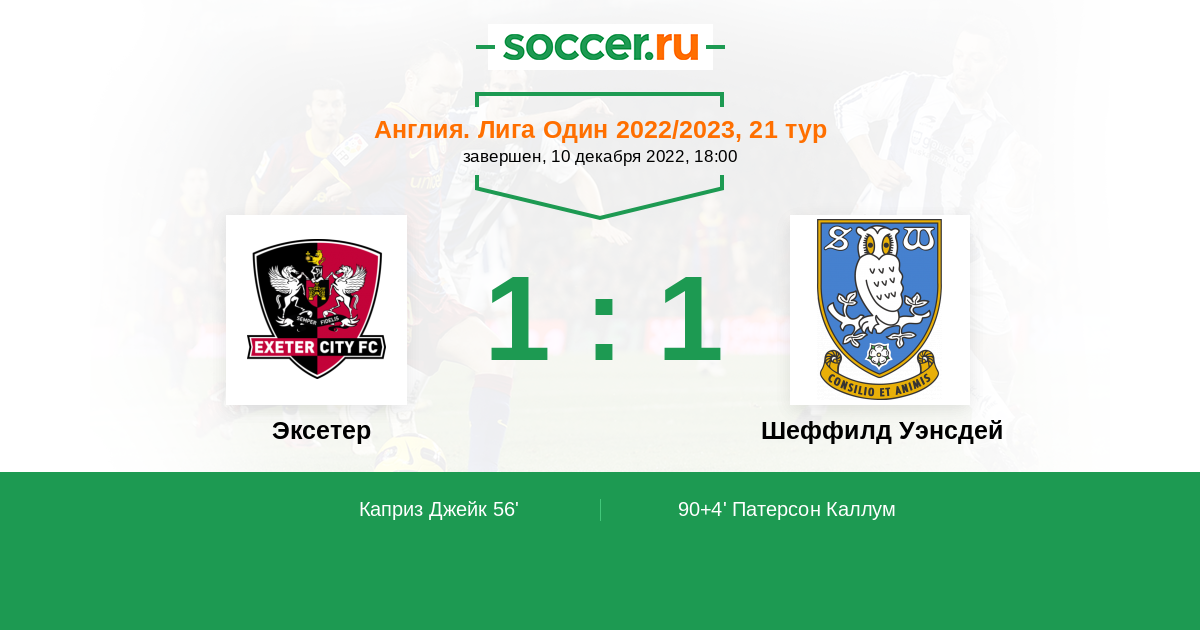 Протокол матча Эксетер против Шеффилд Уэнсдей
