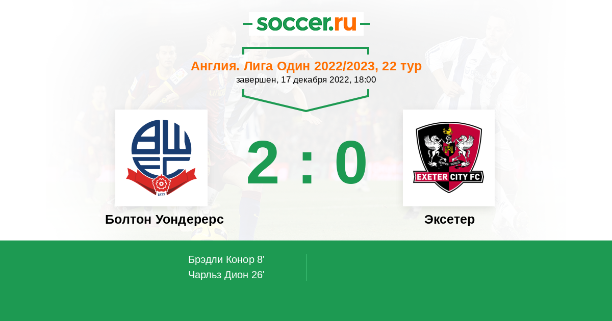 Протокол матча Болтон Уондерерс против Эксетер