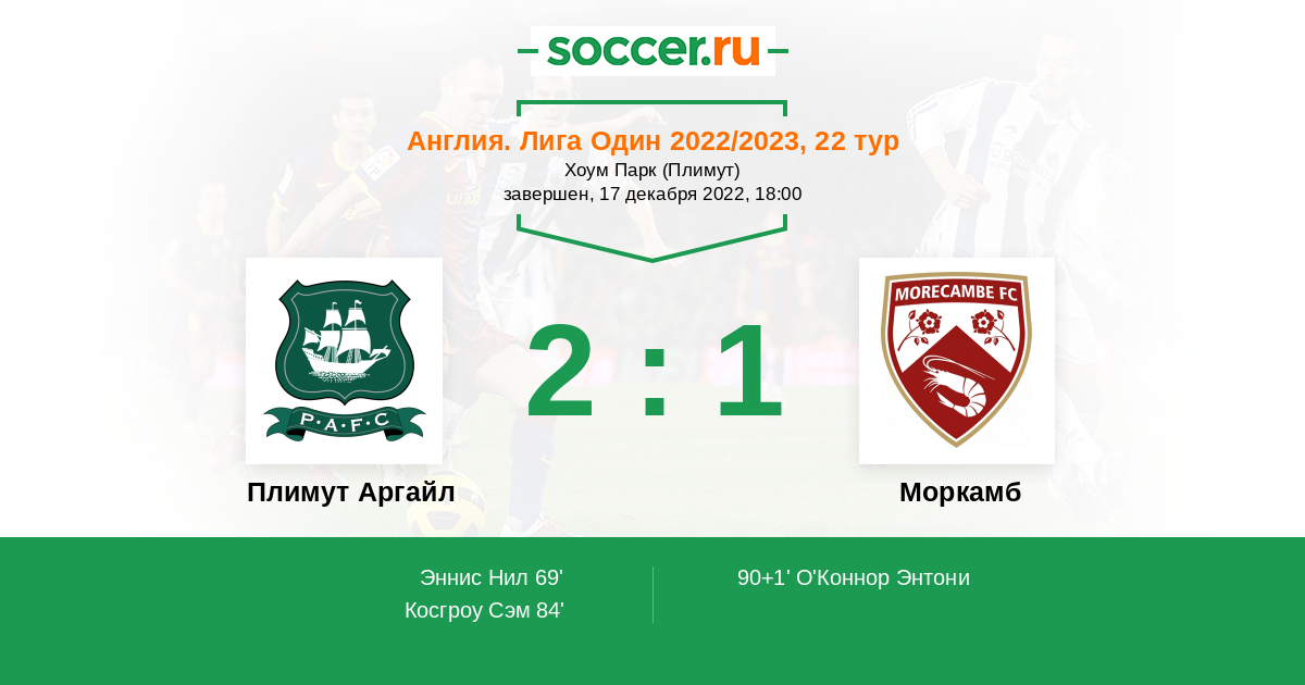 Протокол матча Плимут Аргайл против Моркамб