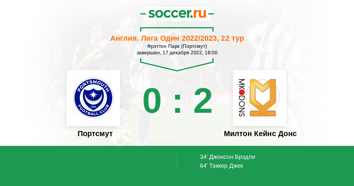 Протокол матча Портсмут против Милтон Кейнс Донс