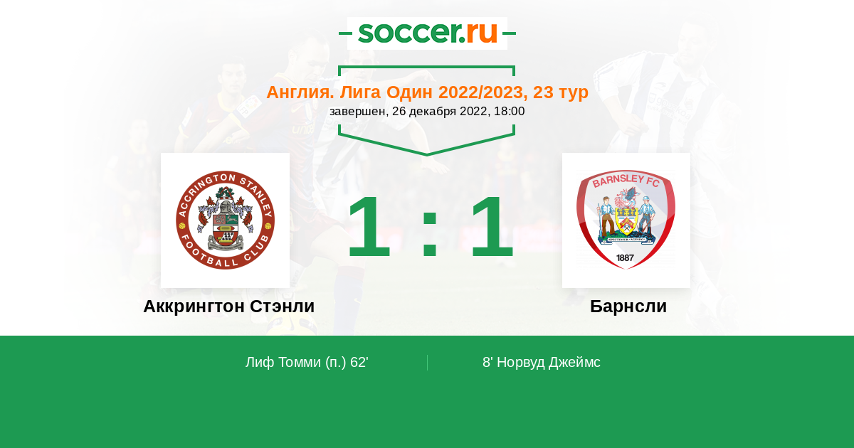 Протокол матча Аккрингтон Стэнли против Барнсли