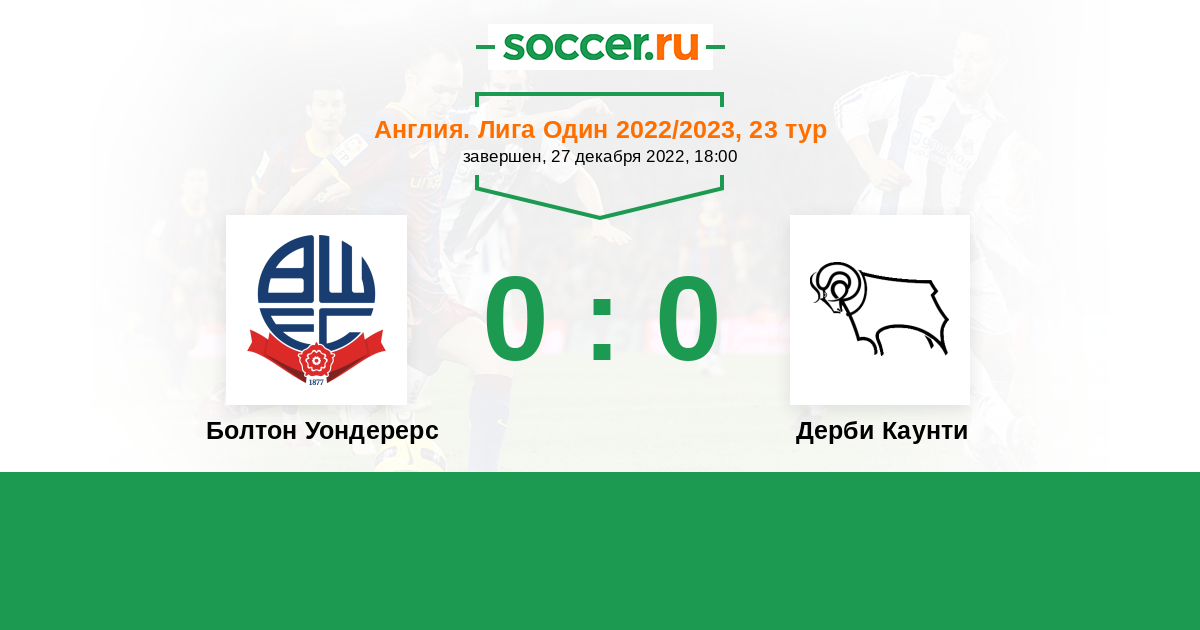 Протокол матча Болтон Уондерерс против Дерби Каунти