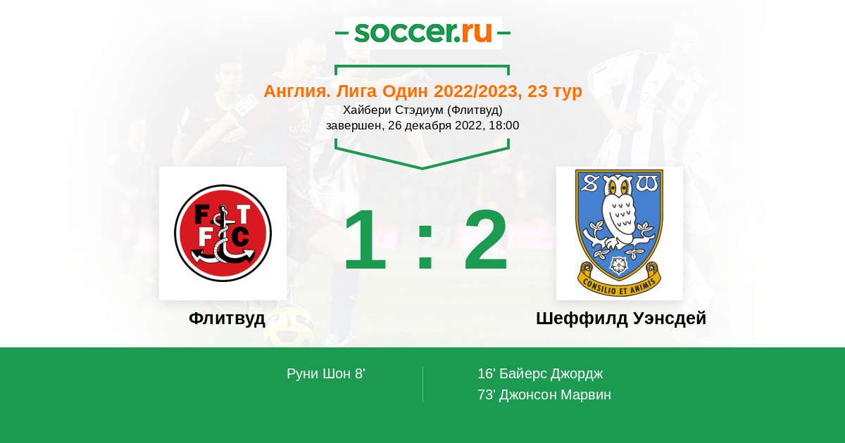 Протокол матча Флитвуд против Шеффилд Уэнсдей