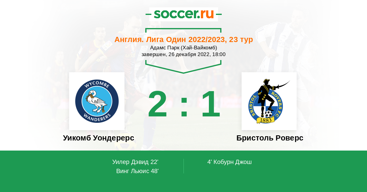 Протокол матча Уикомб Уондерерс против Бристоль Роверс