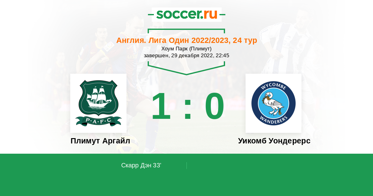 Протокол матча Плимут Аргайл против Уикомб Уондерерс