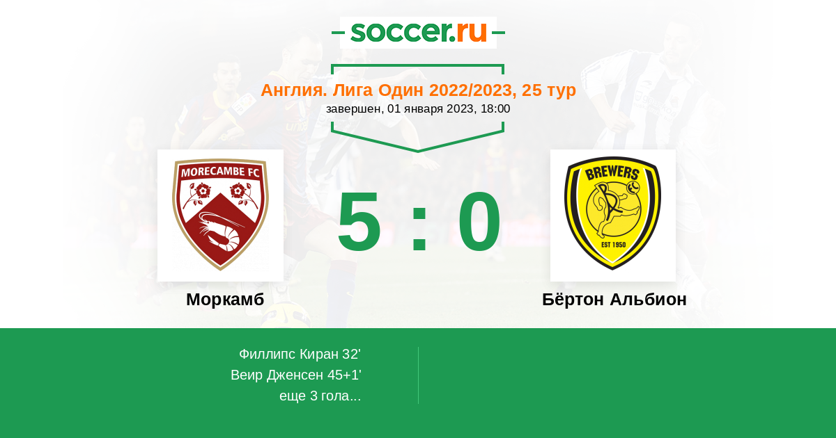 Протокол матча Моркамб против Бёртон Альбион