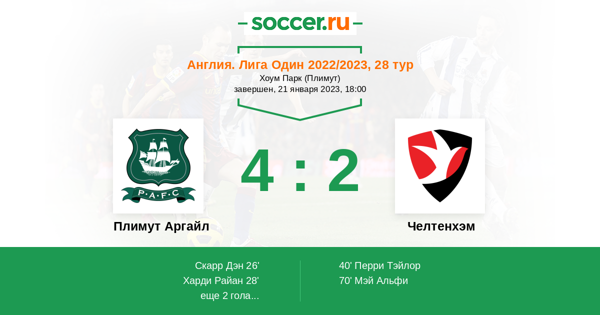 Протокол матча Плимут Аргайл против Челтенхэм