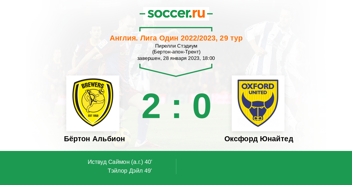 Протокол матча Бёртон Альбион против Оксфорд Юнайтед
