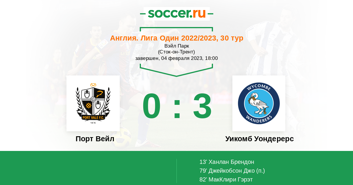 Протокол матча Порт Вейл против Уикомб Уондерерс