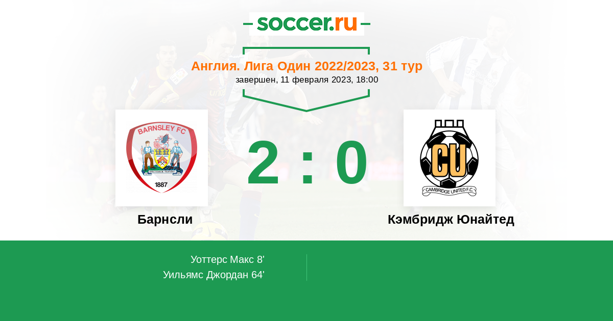 Протокол матча Барнсли против Кэмбридж Юнайтед