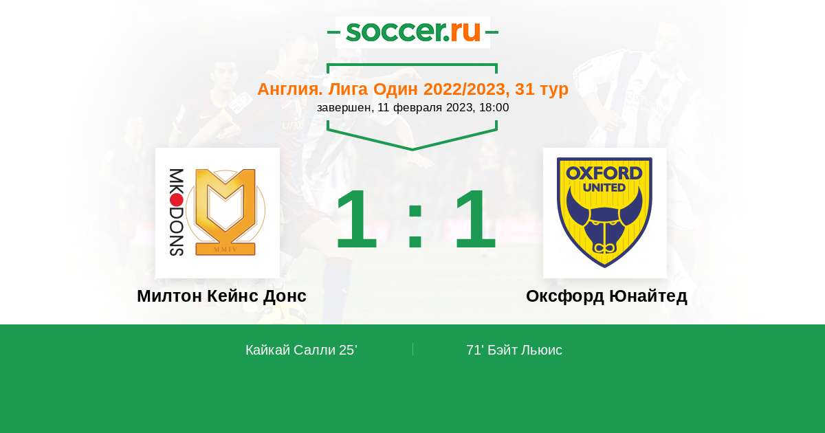 Протокол матча Милтон Кейнс Донс против Оксфорд Юнайтед