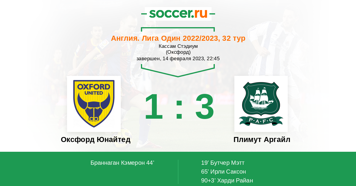 Протокол матча Оксфорд Юнайтед против Плимут Аргайл