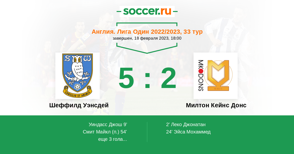 Протокол матча Шеффилд Уэнсдей против Милтон Кейнс Донс