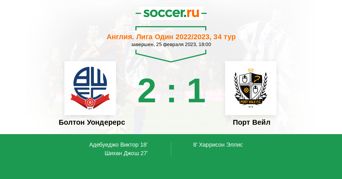 Протокол матча Болтон Уондерерс против Порт Вейл
