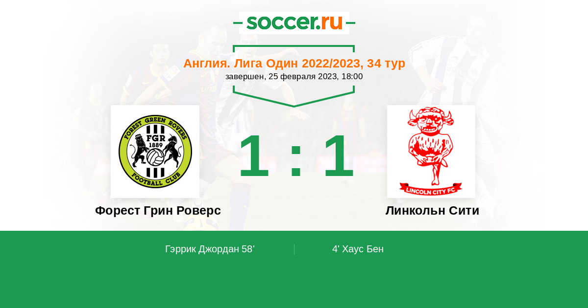 Протокол матча Форест Грин Роверс против Линкольн Сити
