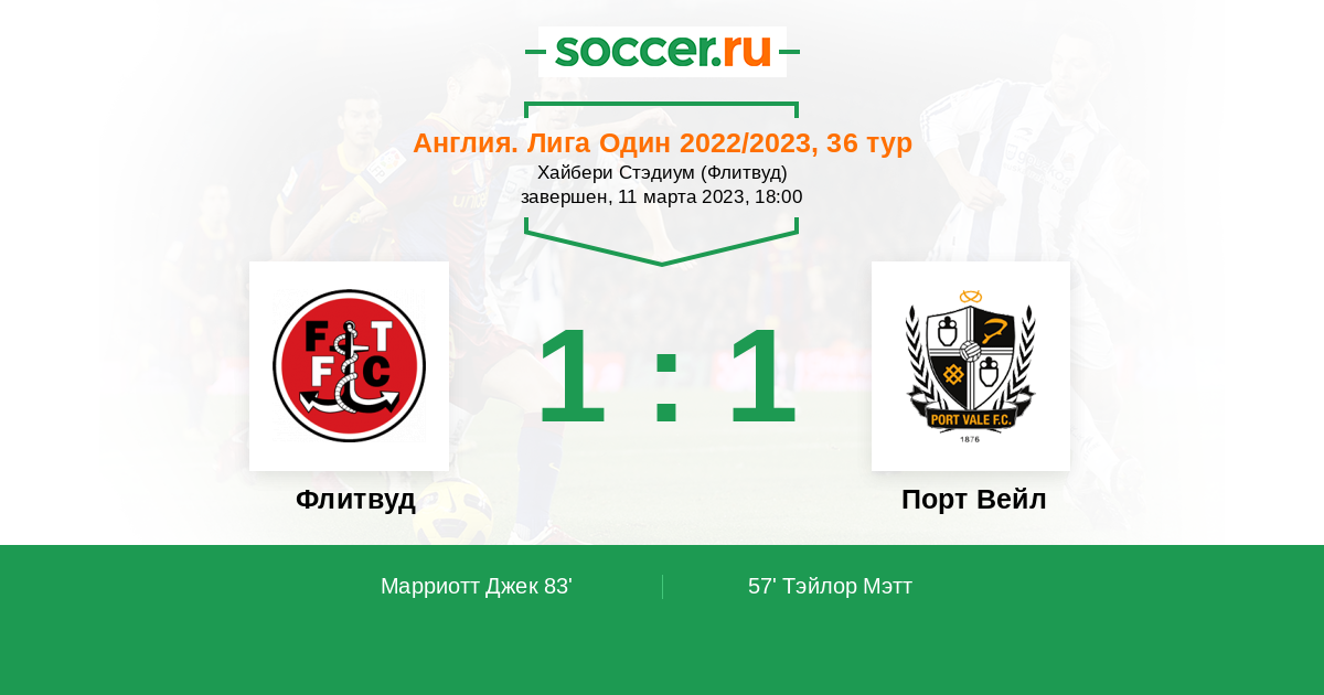 Протокол матча Флитвуд против Порт Вейл