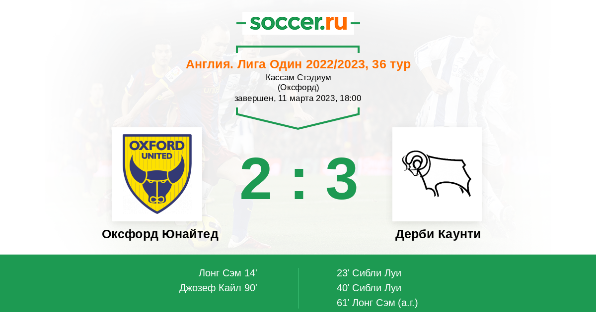 Протокол матча Оксфорд Юнайтед против Дерби Каунти