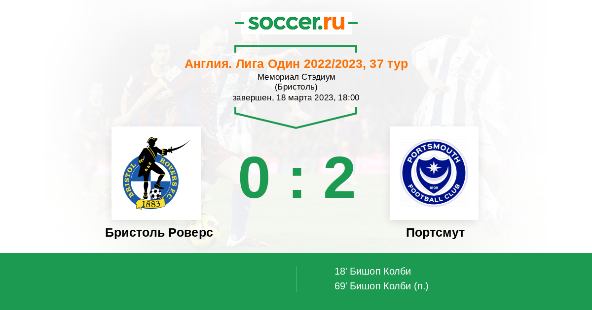 Протокол матча Бристоль Роверс против Портсмут
