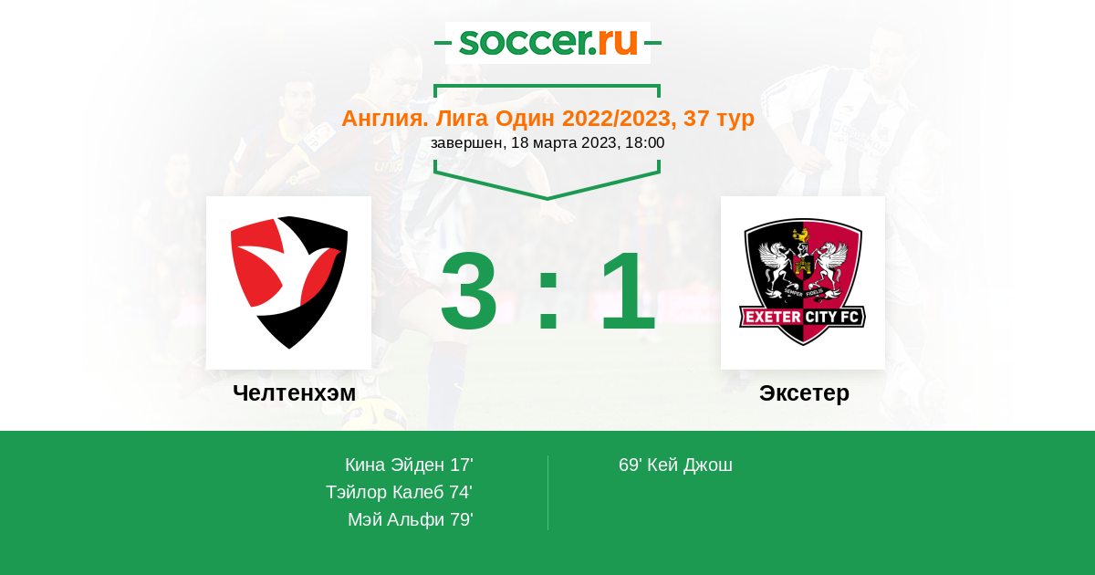 Протокол матча Челтенхэм против Эксетер