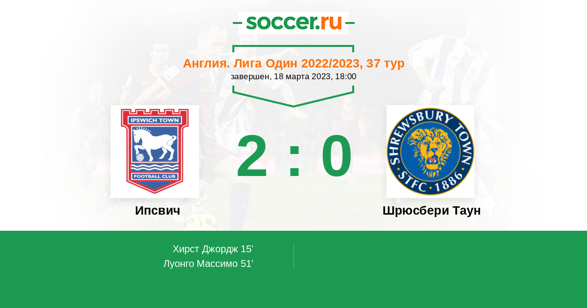 Протокол матча Ипсвич против Шрюсбери Таун