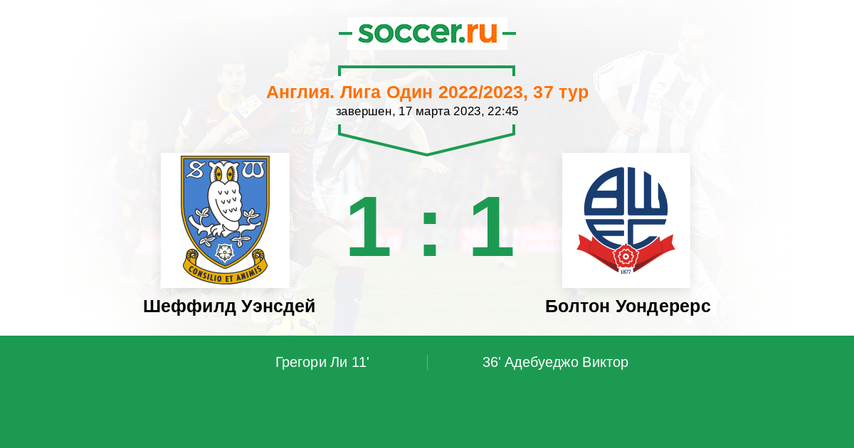 Протокол матча Шеффилд Уэнсдей против Болтон Уондерерс