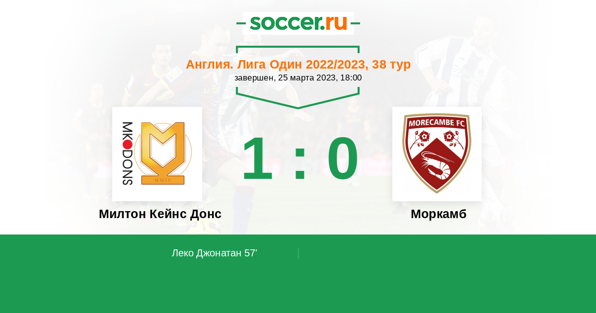 Протокол матча Милтон Кейнс Донс против Моркамб