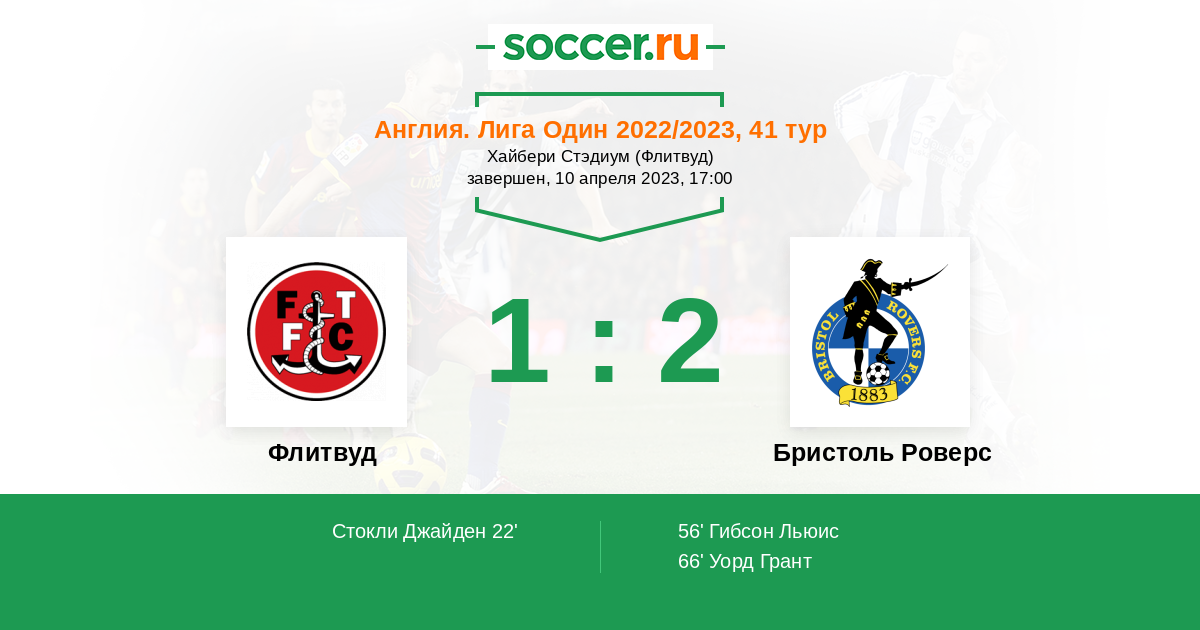Протокол матча Флитвуд против Бристоль Роверс