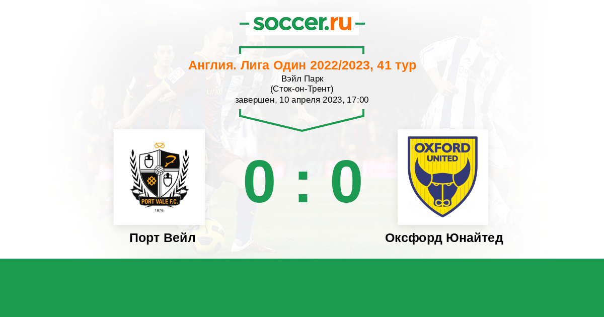 Протокол матча Порт Вейл против Оксфорд Юнайтед