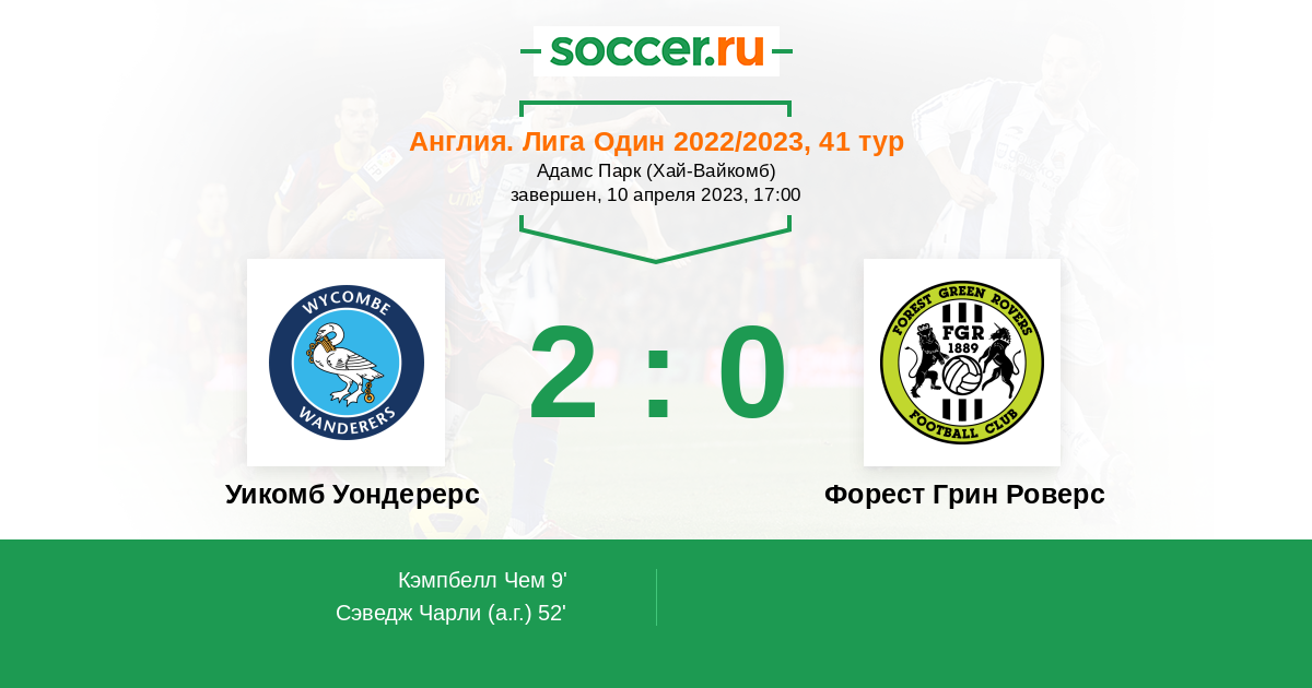 Протокол матча Уикомб Уондерерс против Форест Грин Роверс