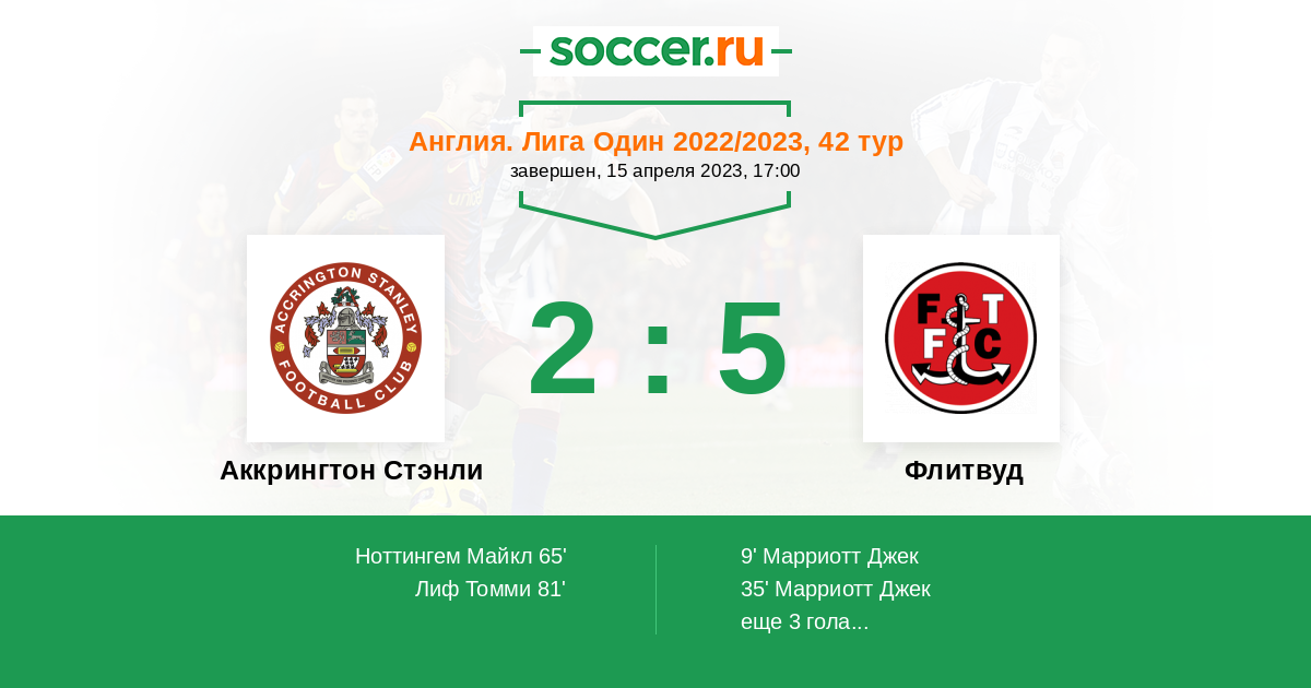 Протокол матча Аккрингтон Стэнли против Флитвуд