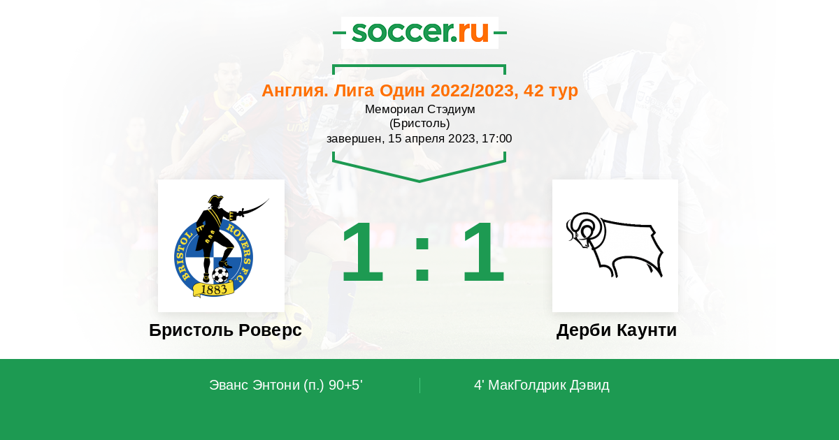 Протокол матча Бристоль Роверс против Дерби Каунти