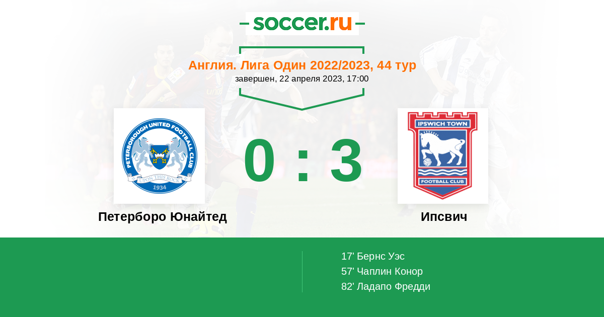 Протокол матча Петерборо Юнайтед против Ипсвич