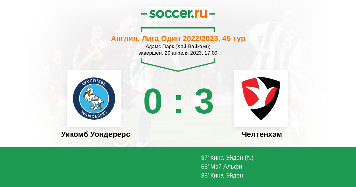 Протокол матча Уикомб Уондерерс против Челтенхэм