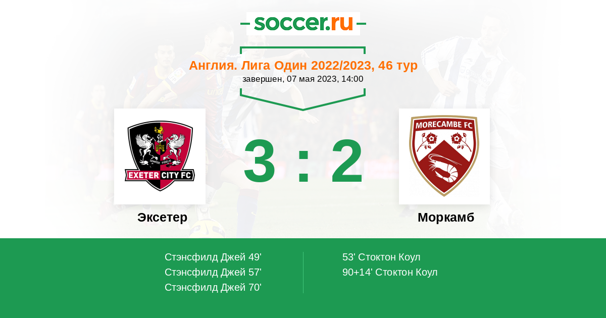 Протокол матча Эксетер против Моркамб
