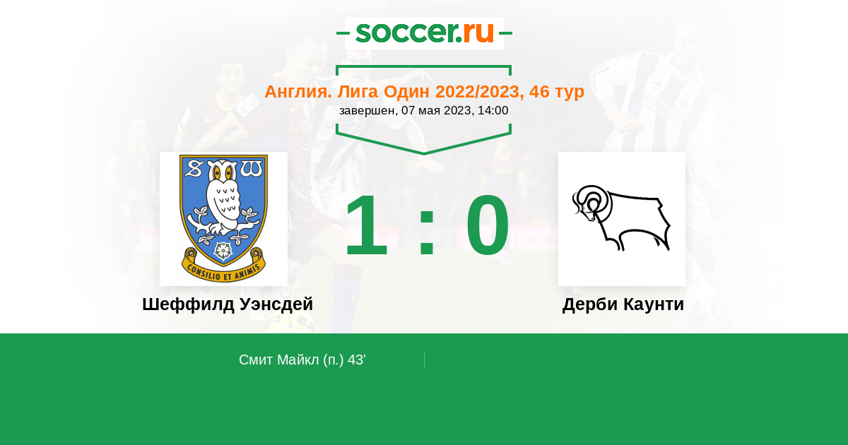 Протокол матча Шеффилд Уэнсдей против Дерби Каунти