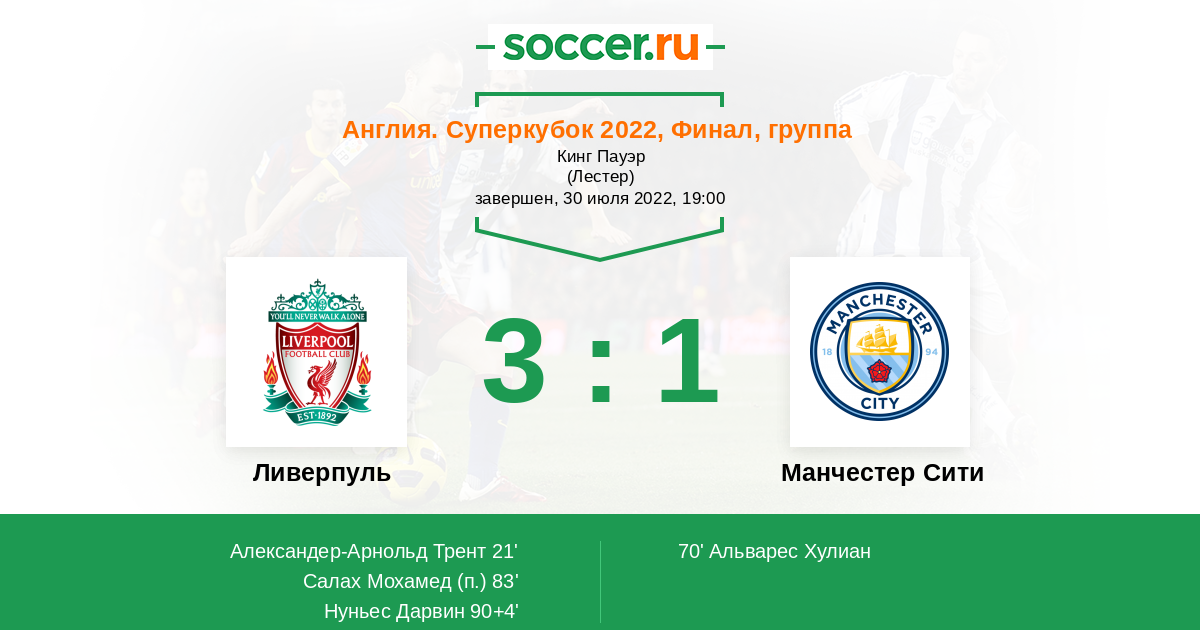 Протокол матча Ливерпуль против Манчестер Сити